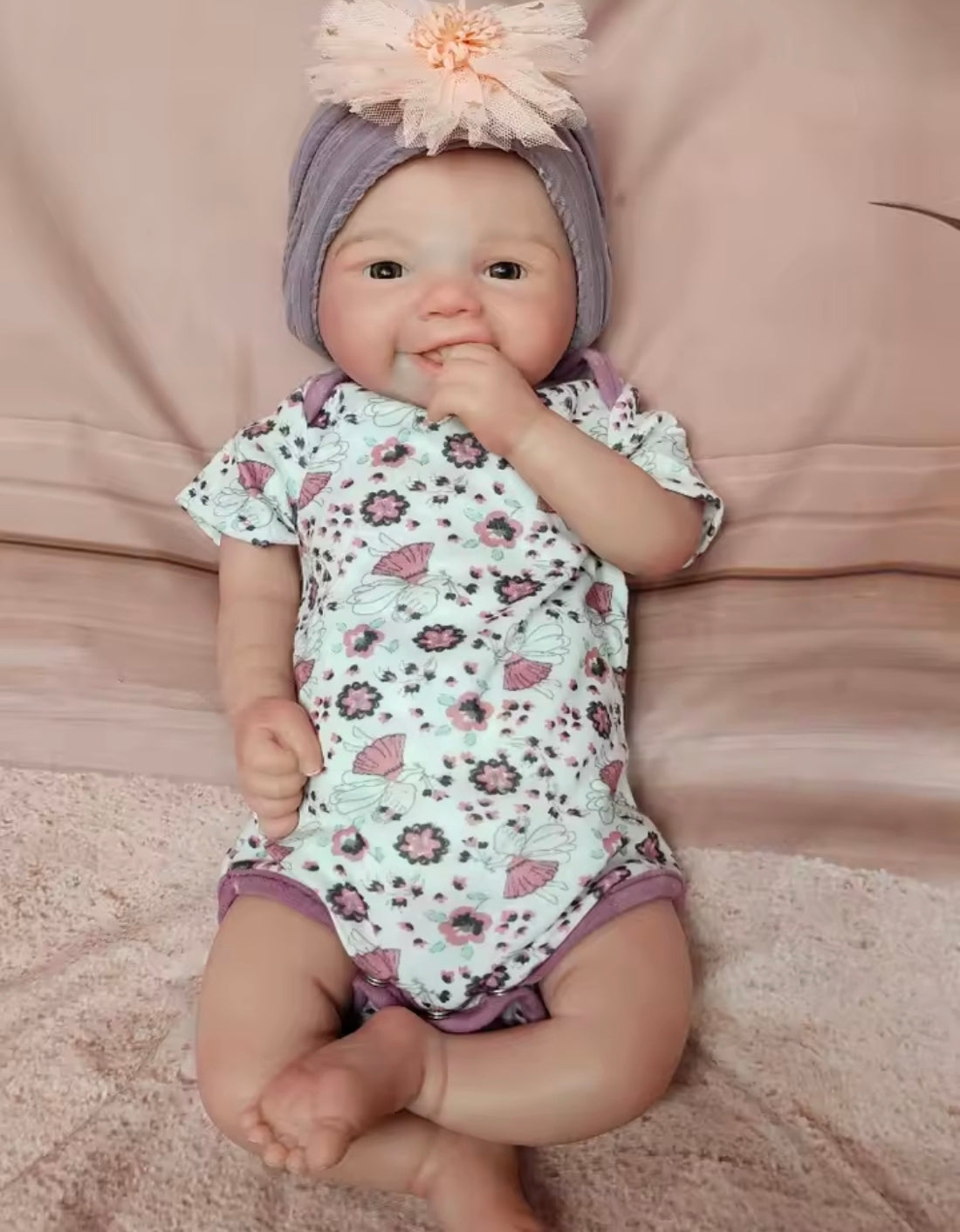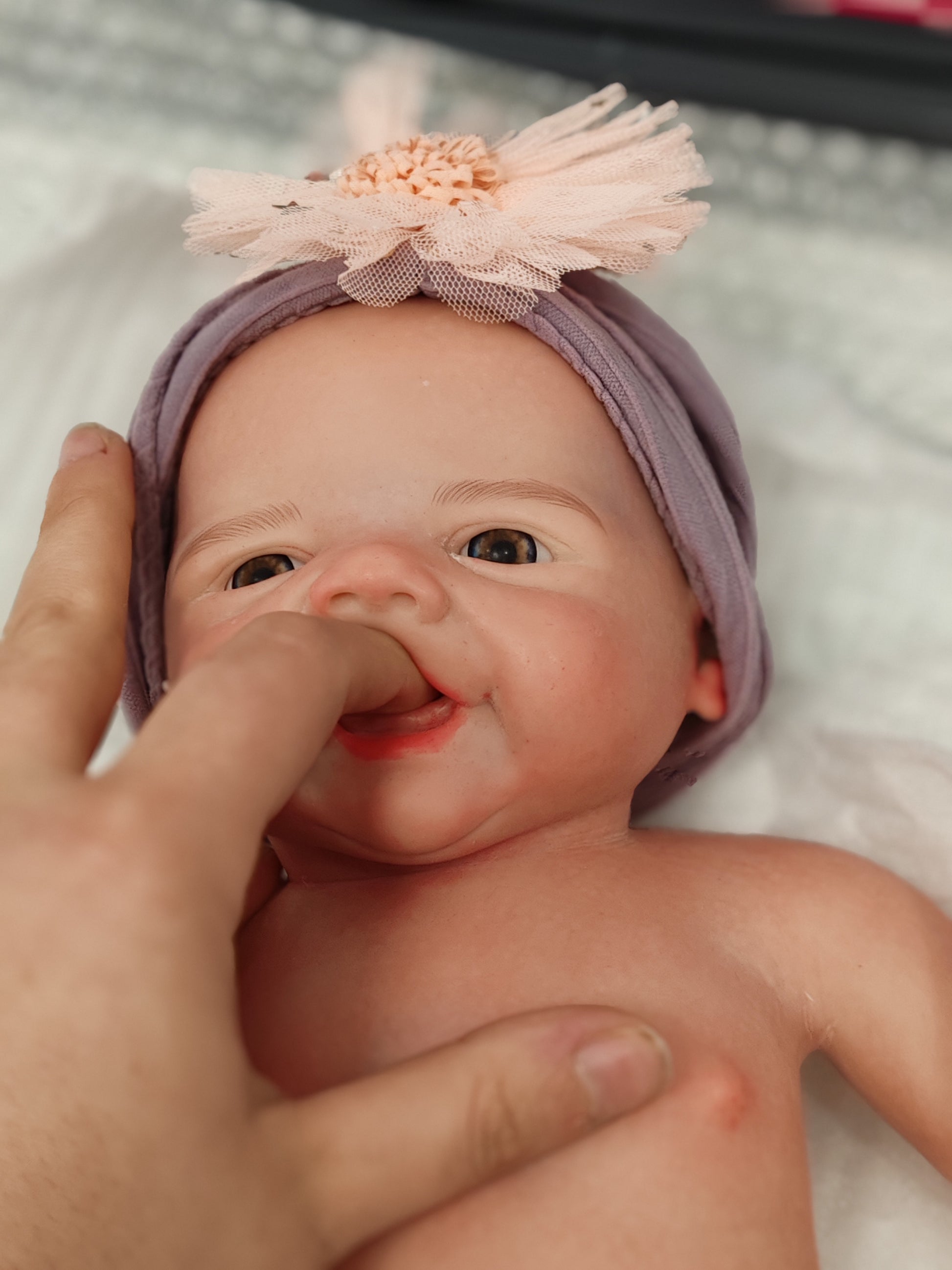 La bambola sembra un vero neonato , con testa cadente , bocca che prende un vero ciuccio e pelle morbida.