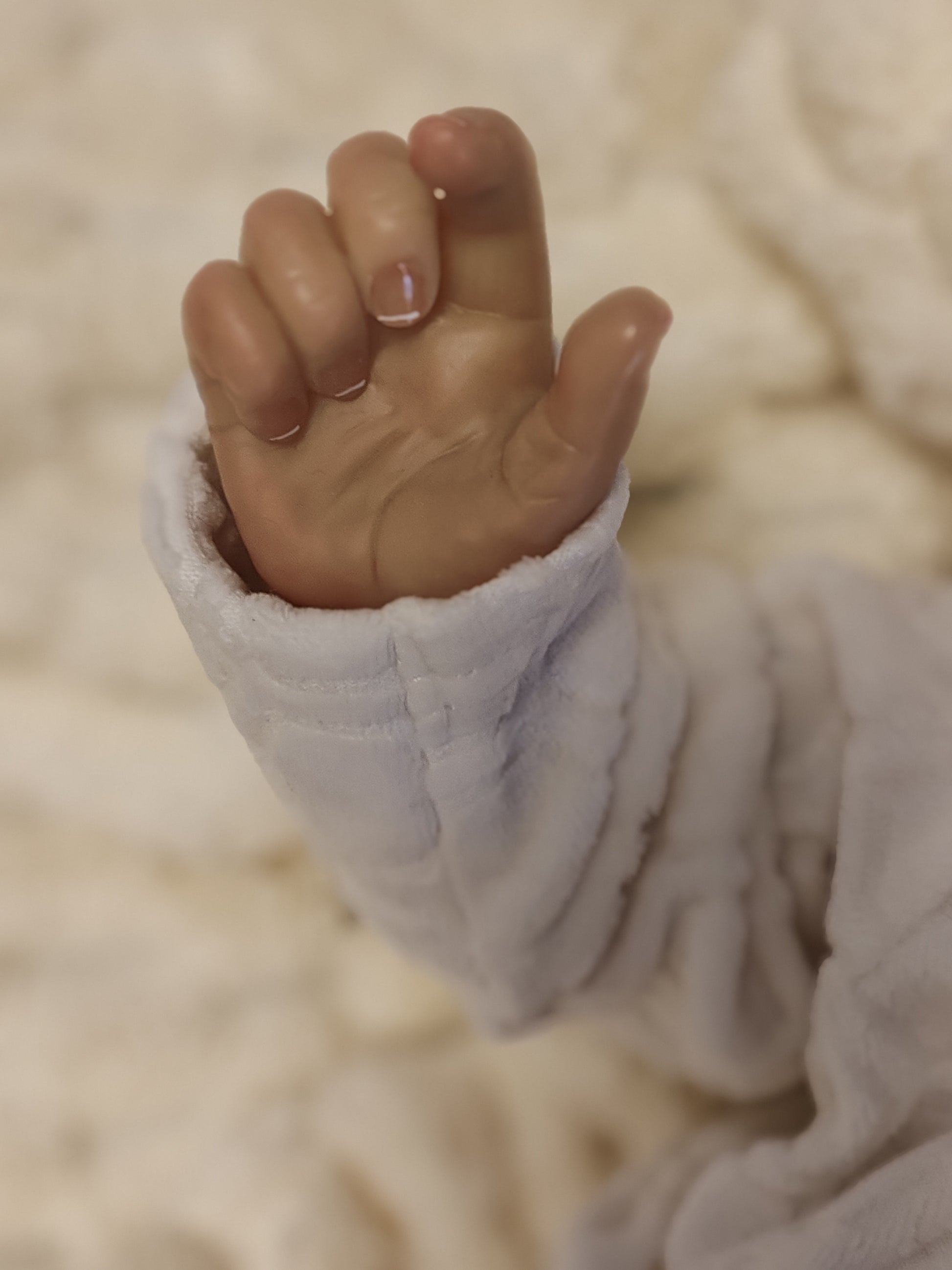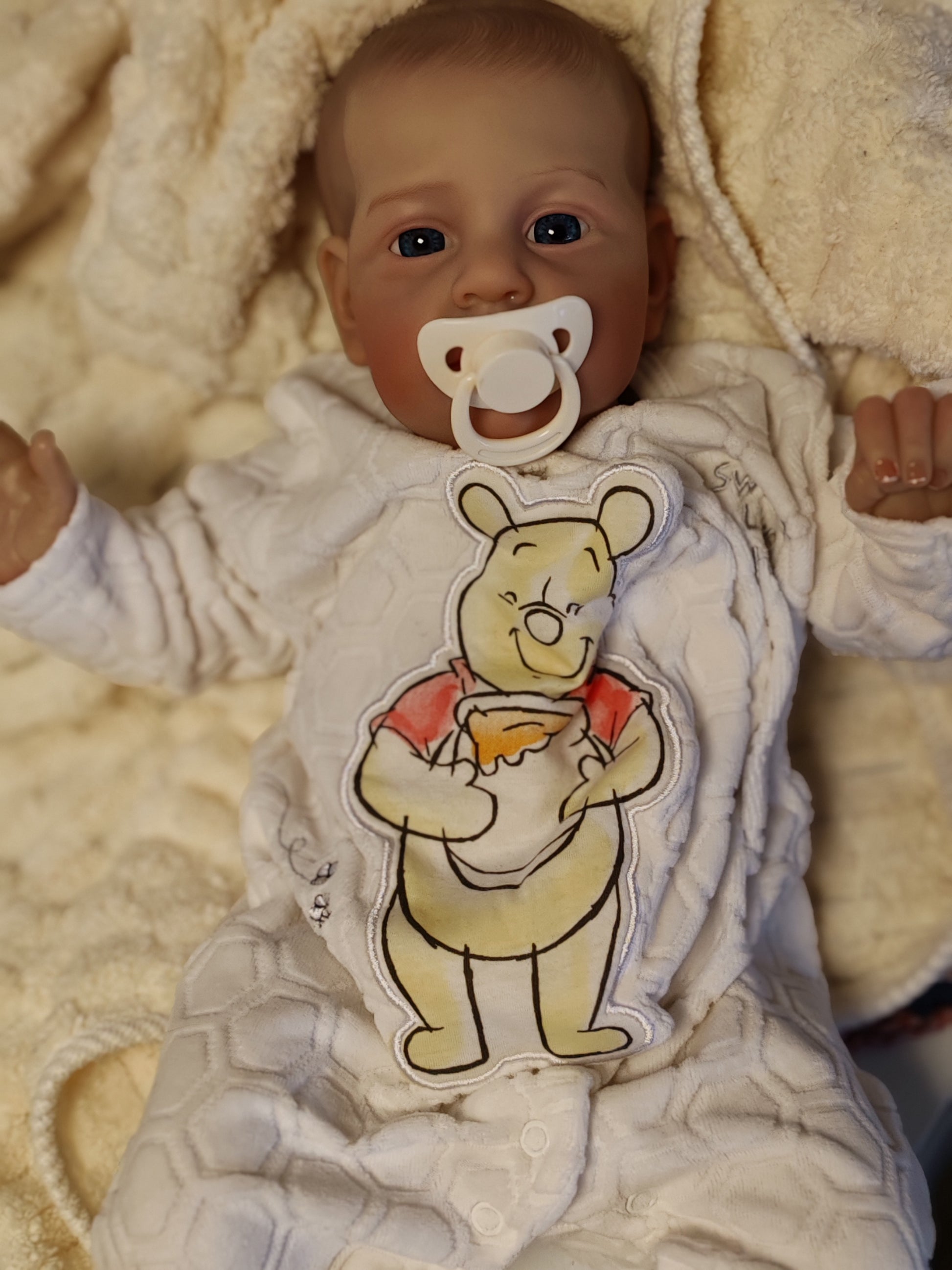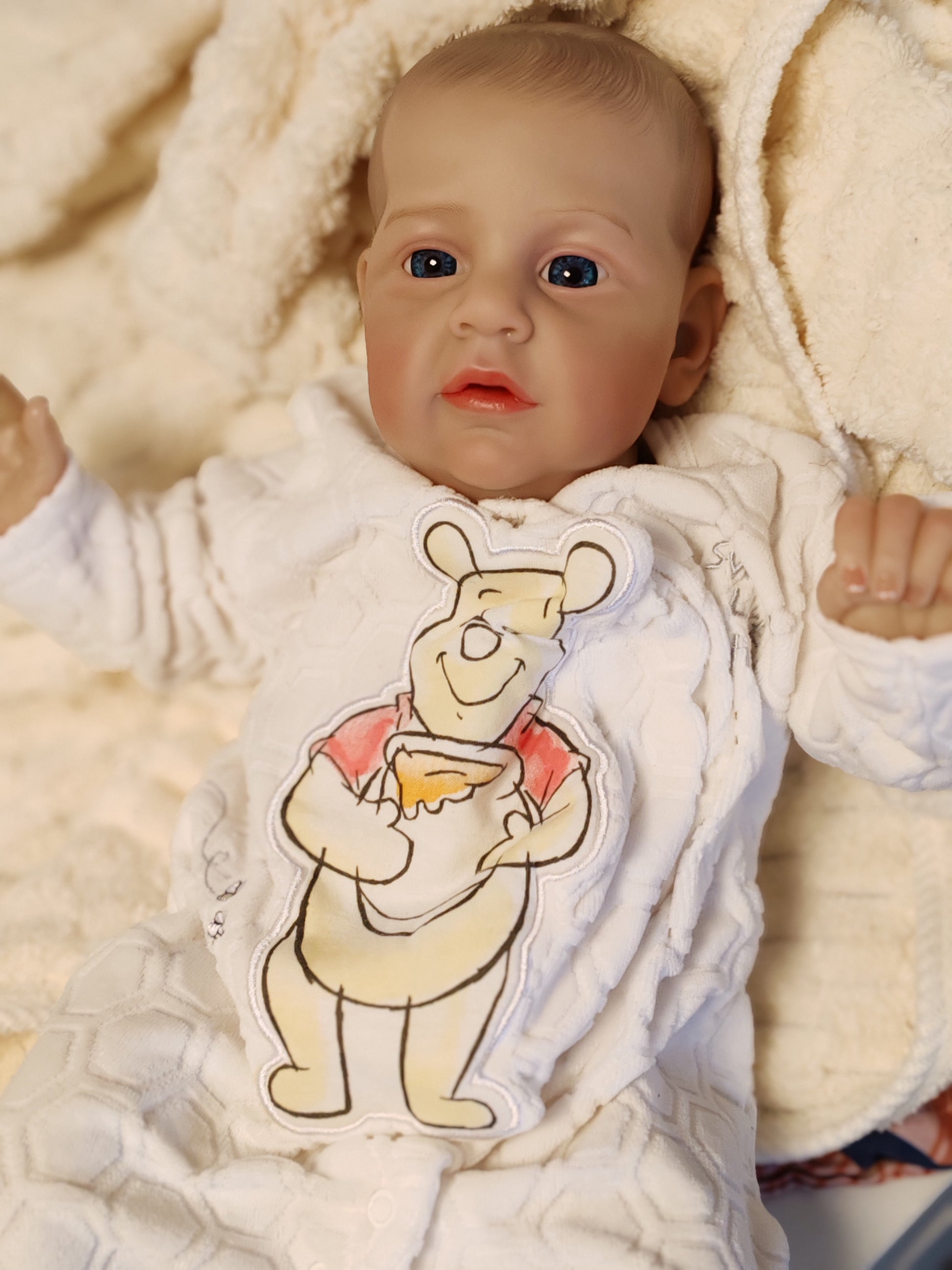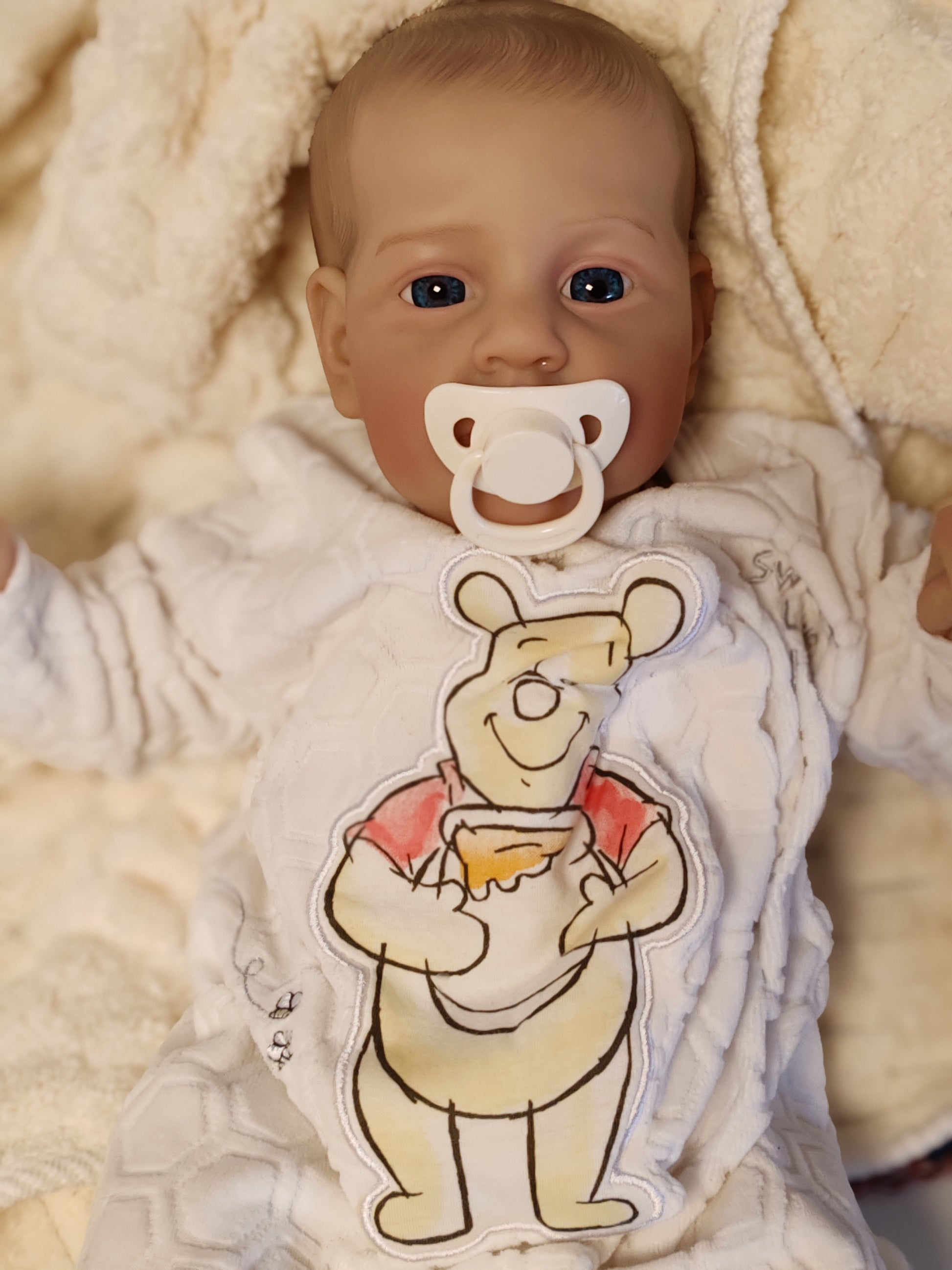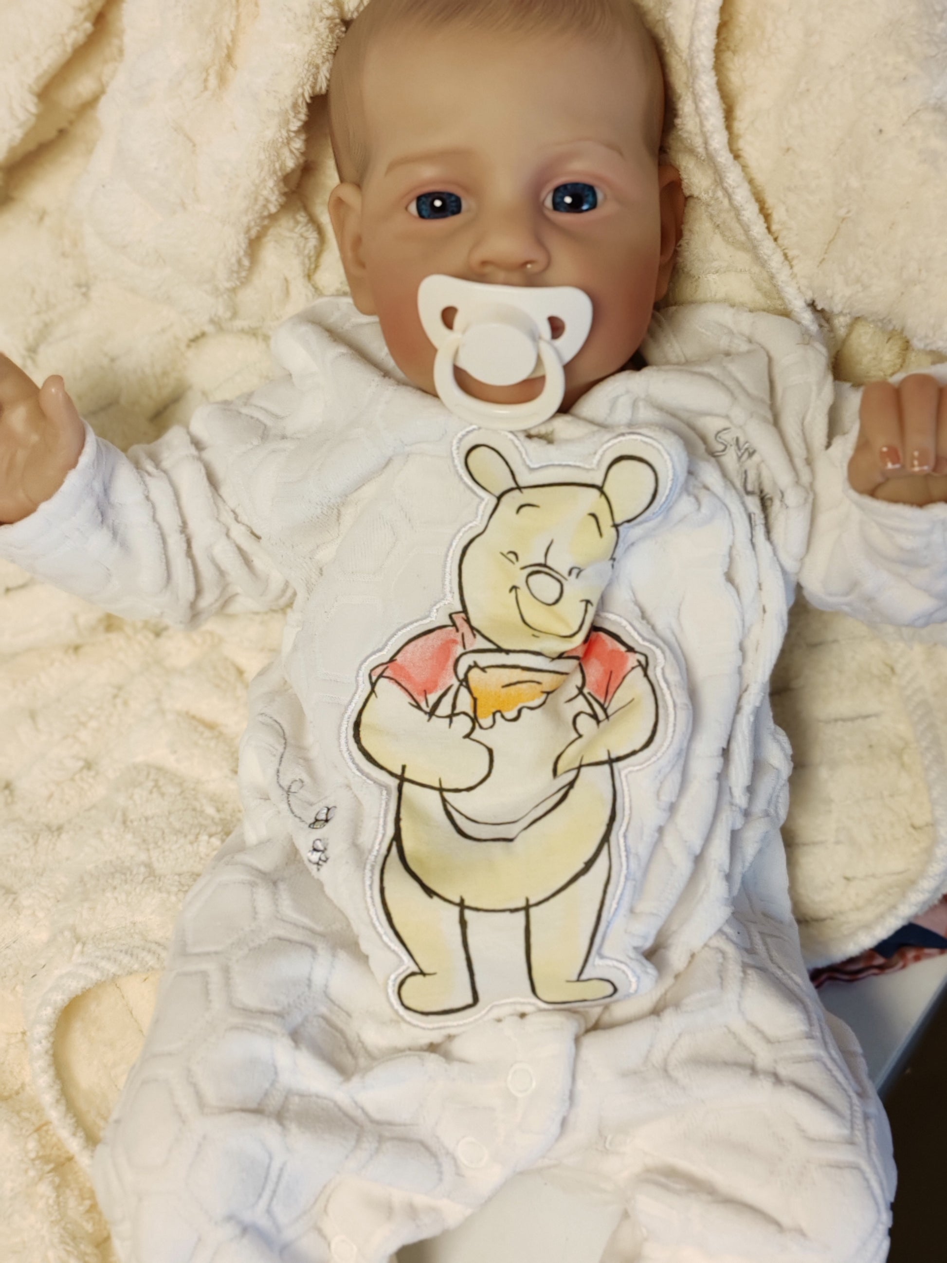 Bambola dal peso reale di circa 2.2kg , 56cm, corpo in stoffa appesantito.