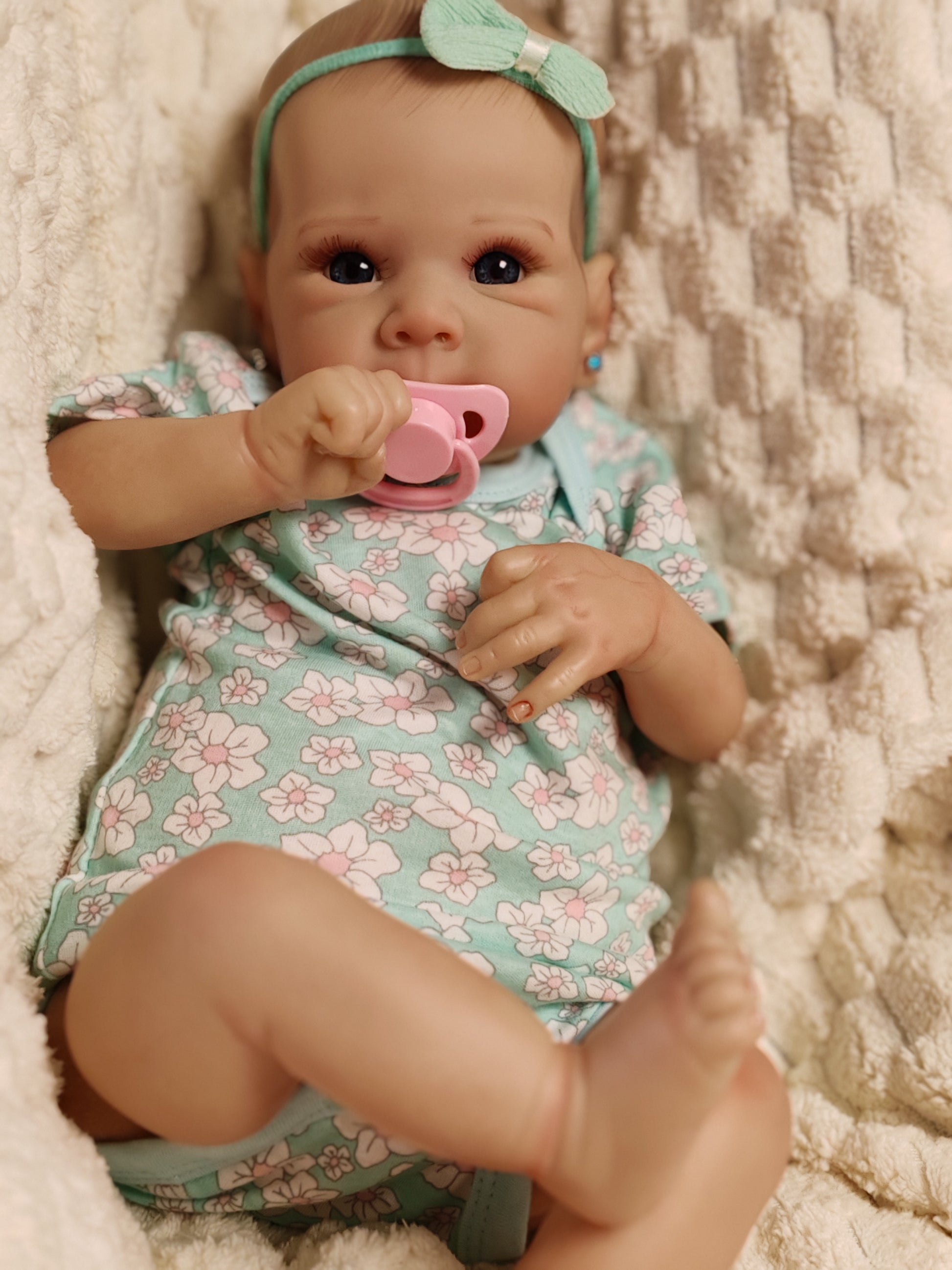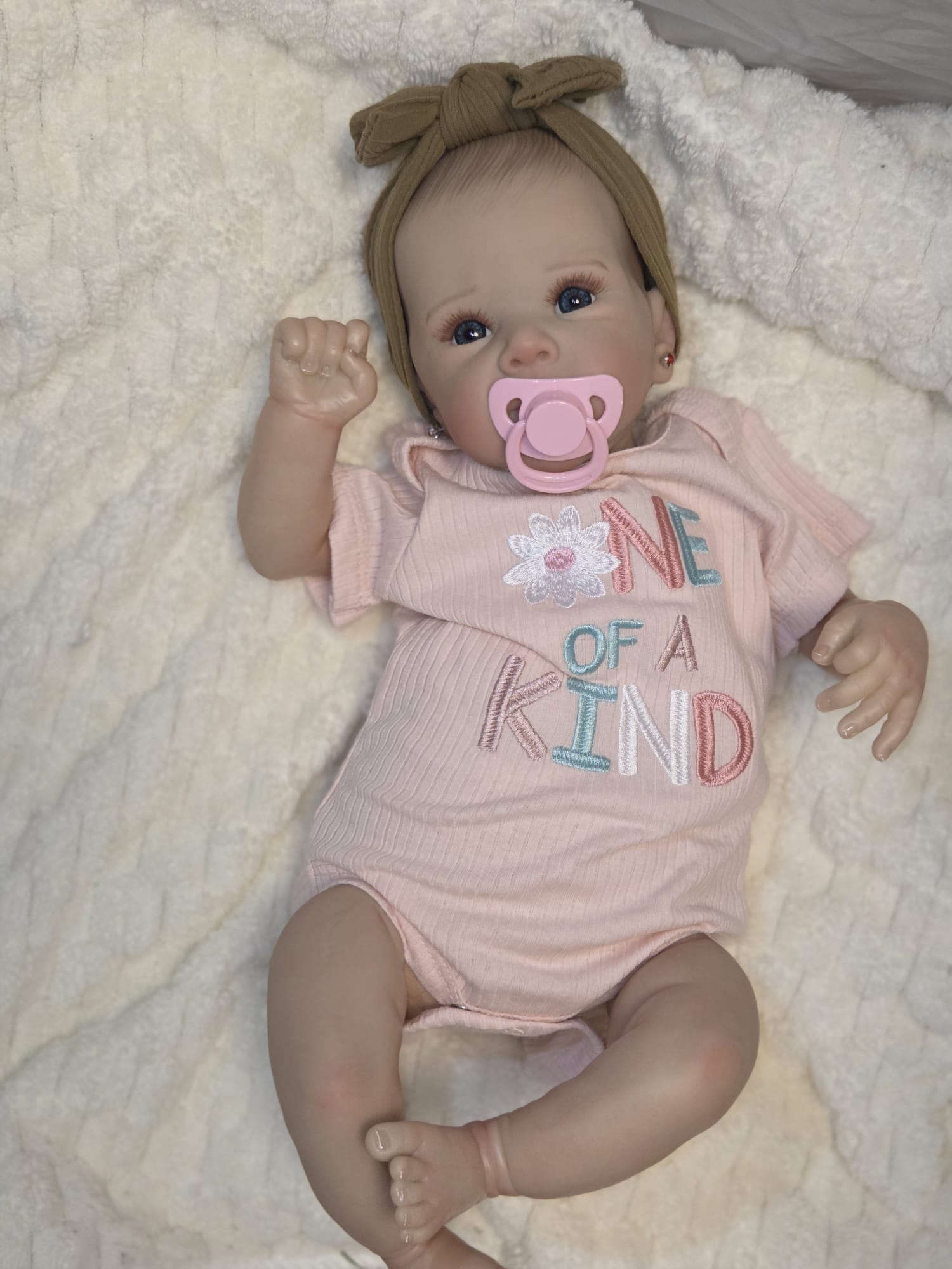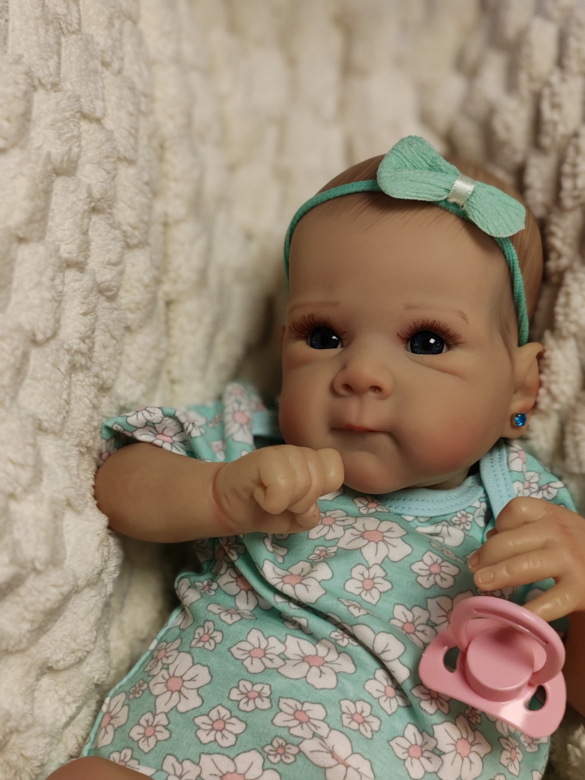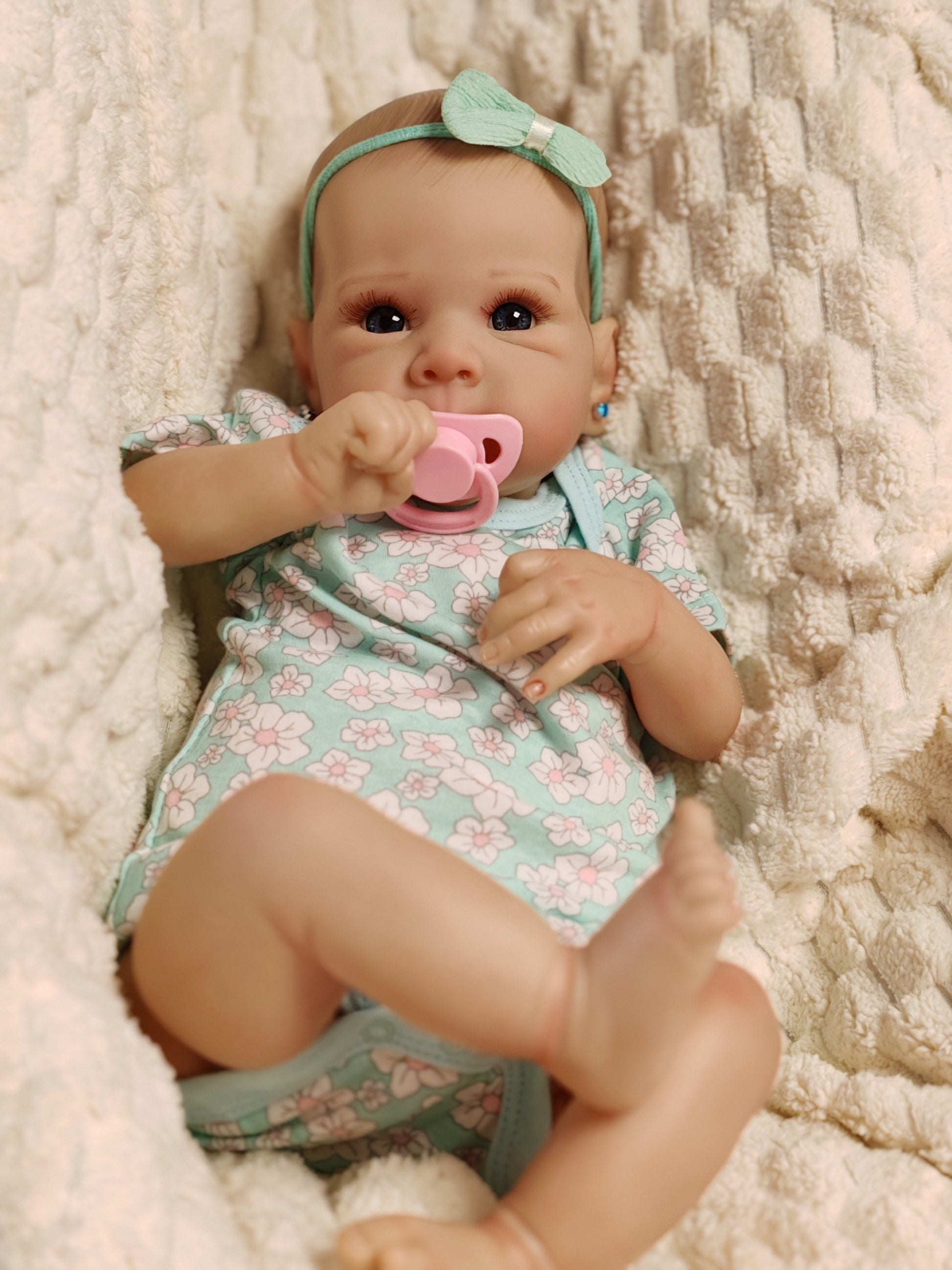 Bambola dal peso reale di circa 2.2kg , 50cm, corpo in stoffa appesantito.