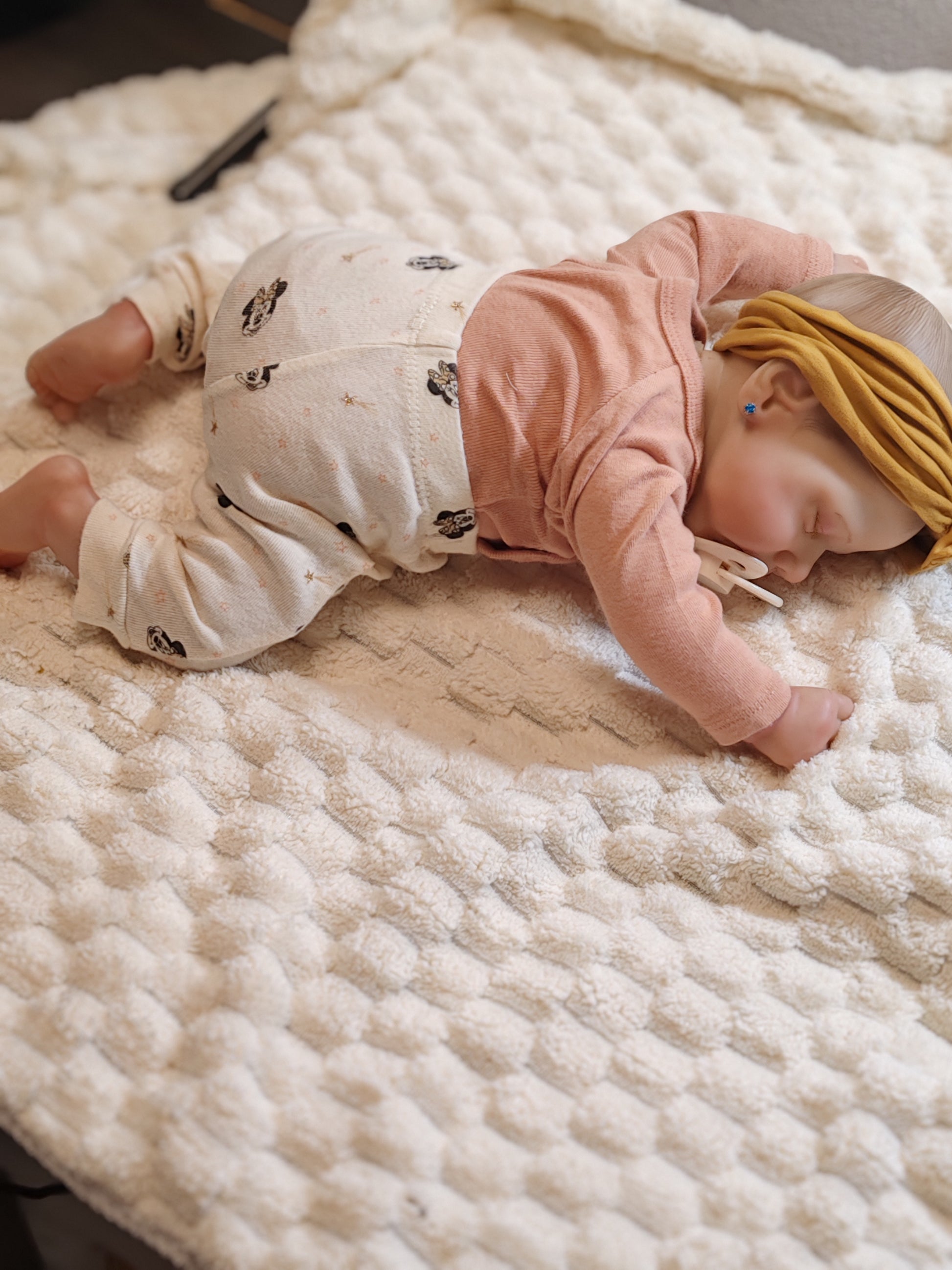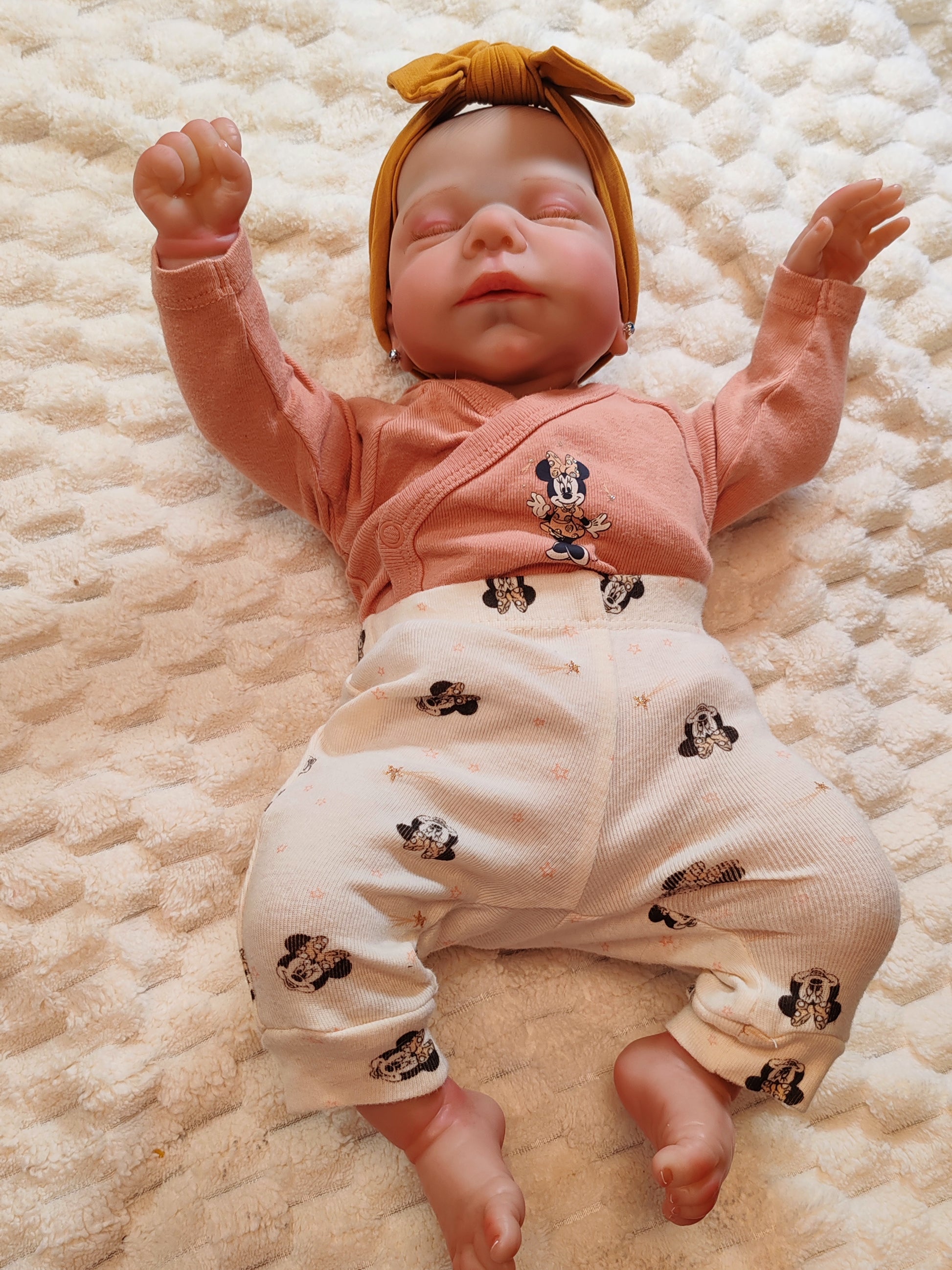 Bambola dal peso reale di circa 2.2kg , 50cm, corpo in stoffa appesantito.