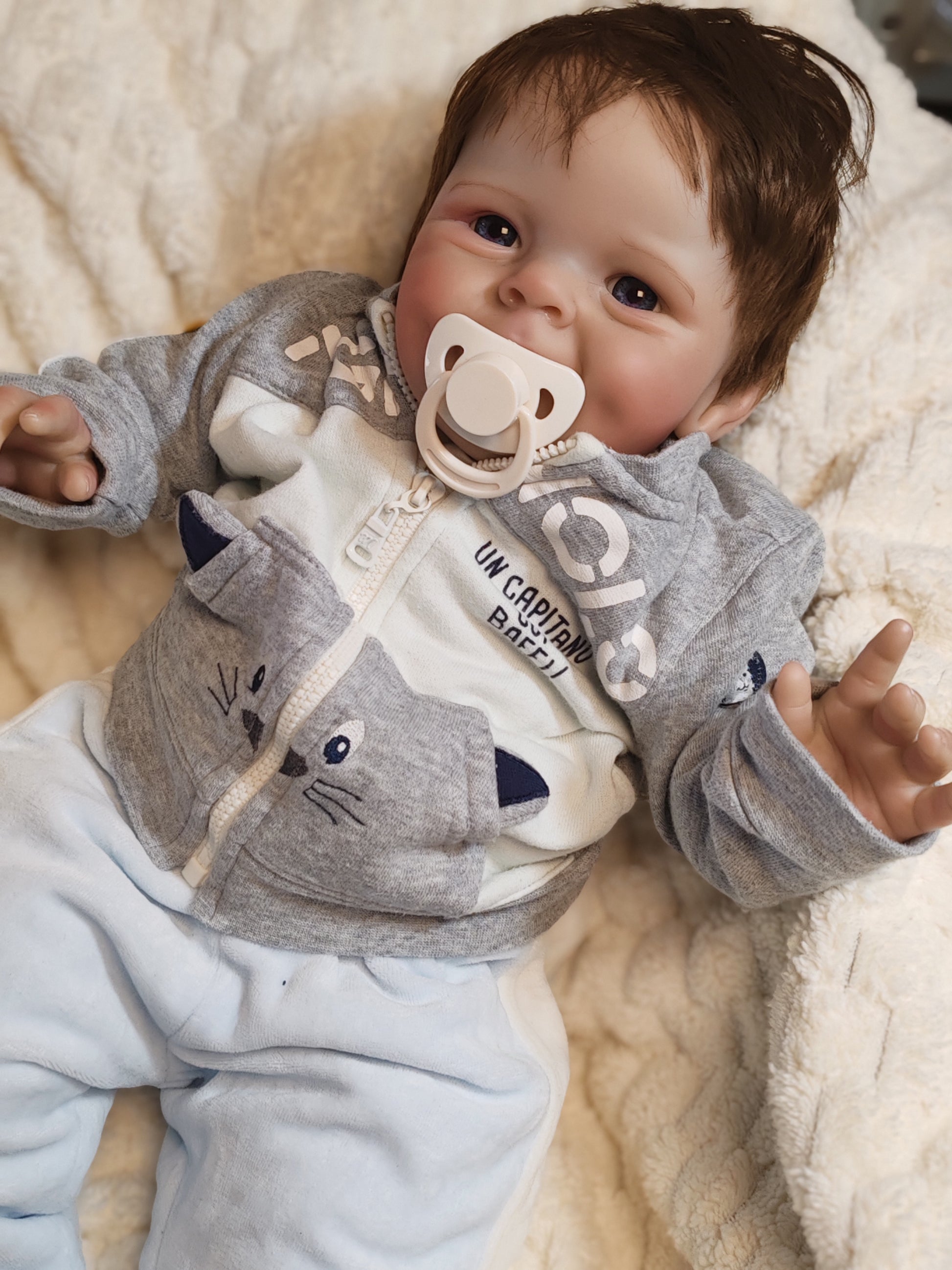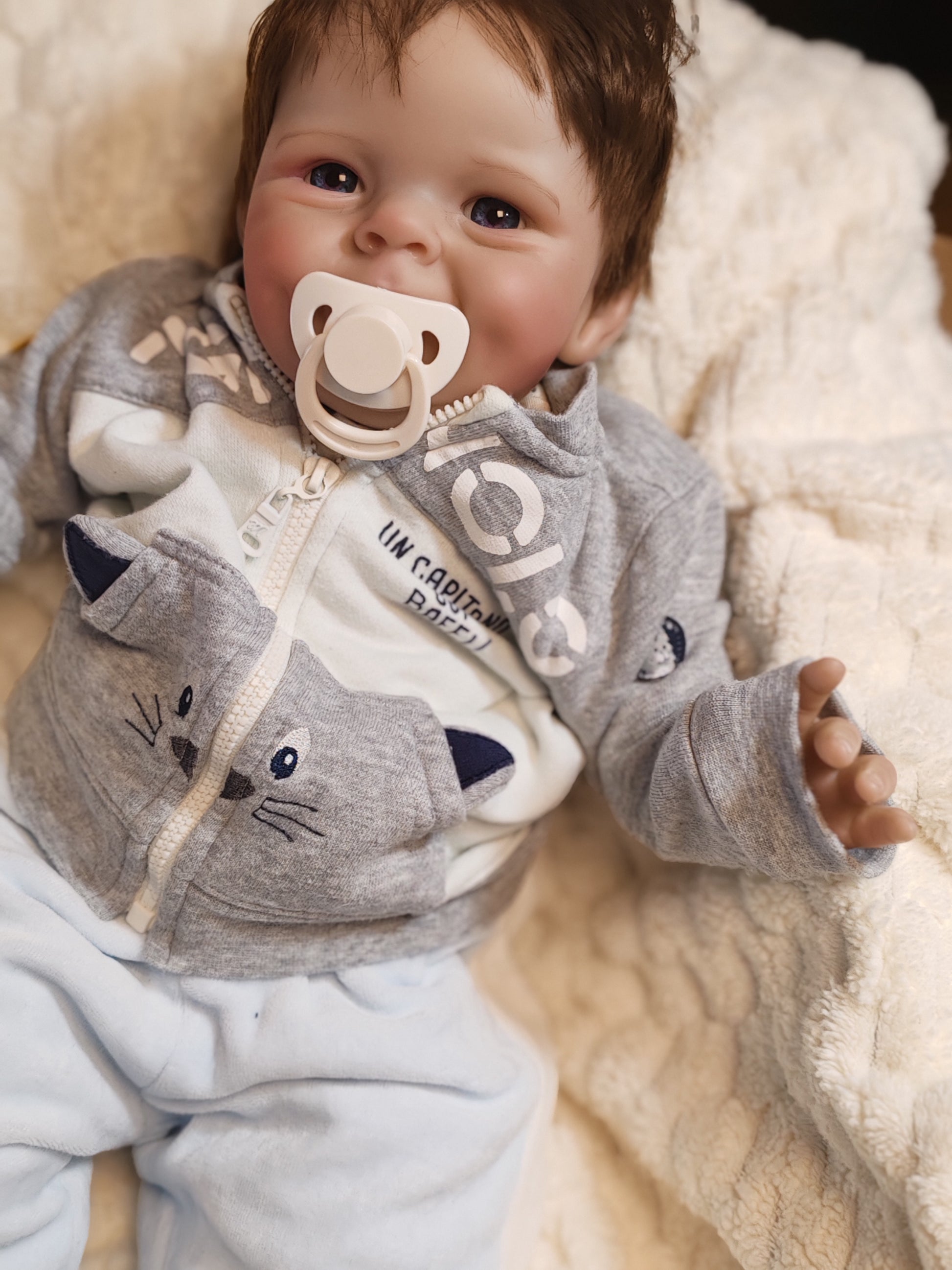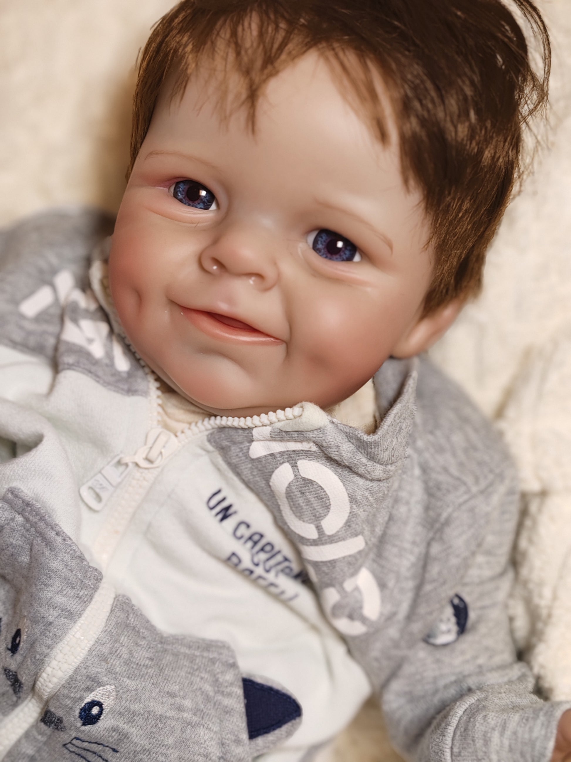 Bambola dal peso reale di circa 3kg e 60cm, corpo in stoffa appesantito.