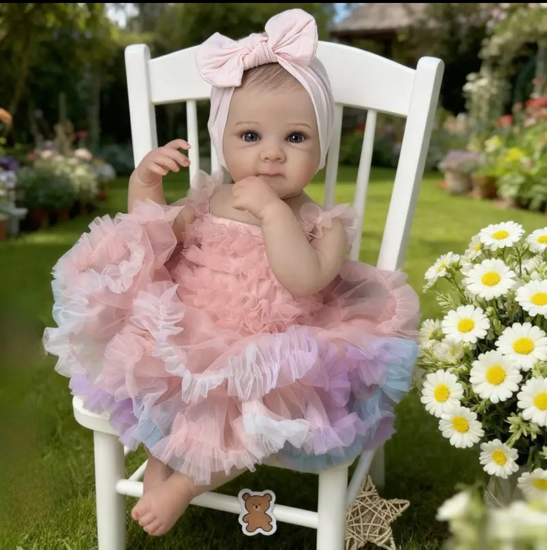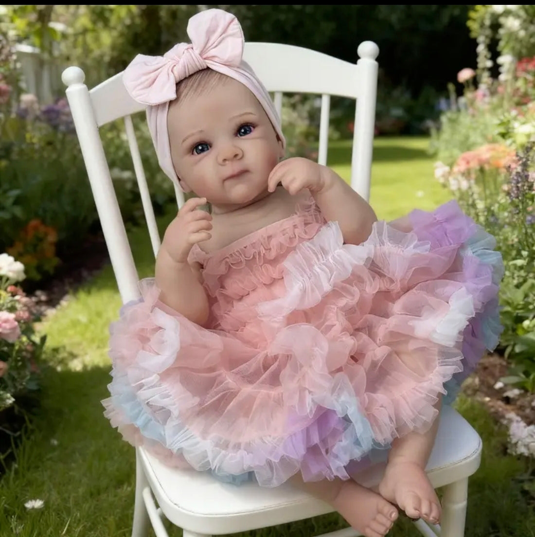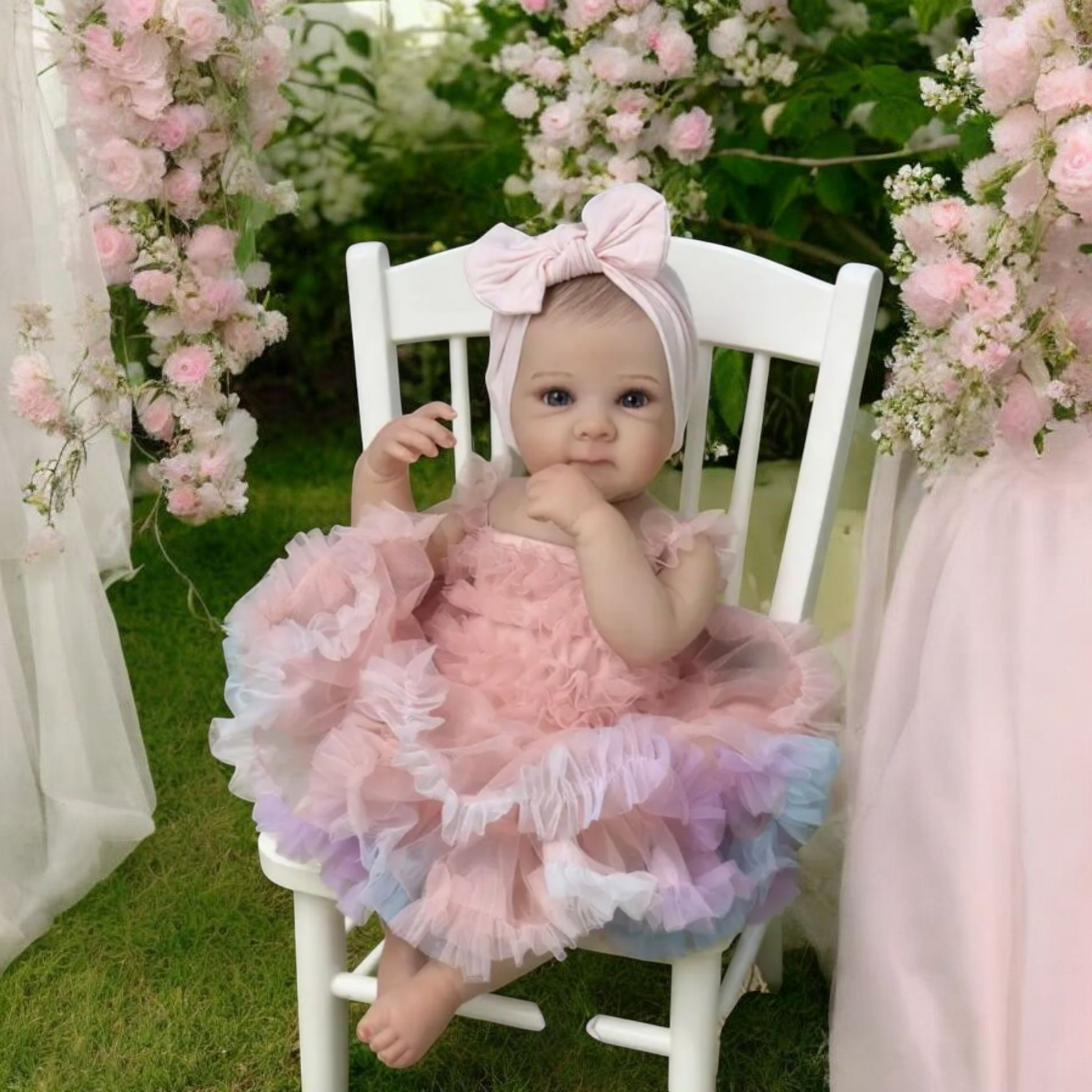 Materiale e struttura:corpo in vinile. Dipinto a mano con vernici termofissate For Genesis e completato con vernice opaca per sigillare. Unghie delle dita delle mani e dei piedi dall'aspetto naturale. Aspetto umido alle narici e agli angoli degli occhi interni per quel tocco extra di realismo