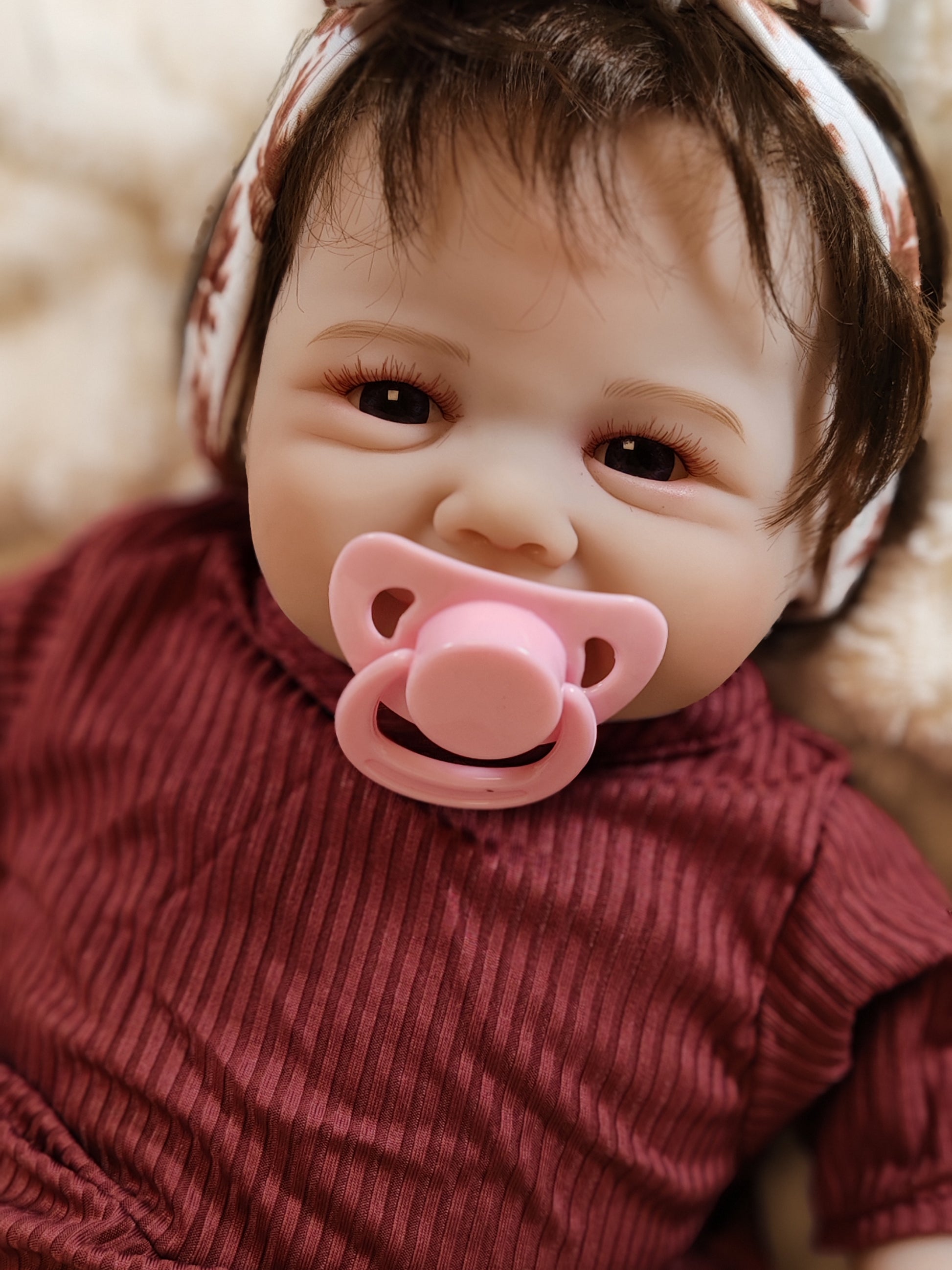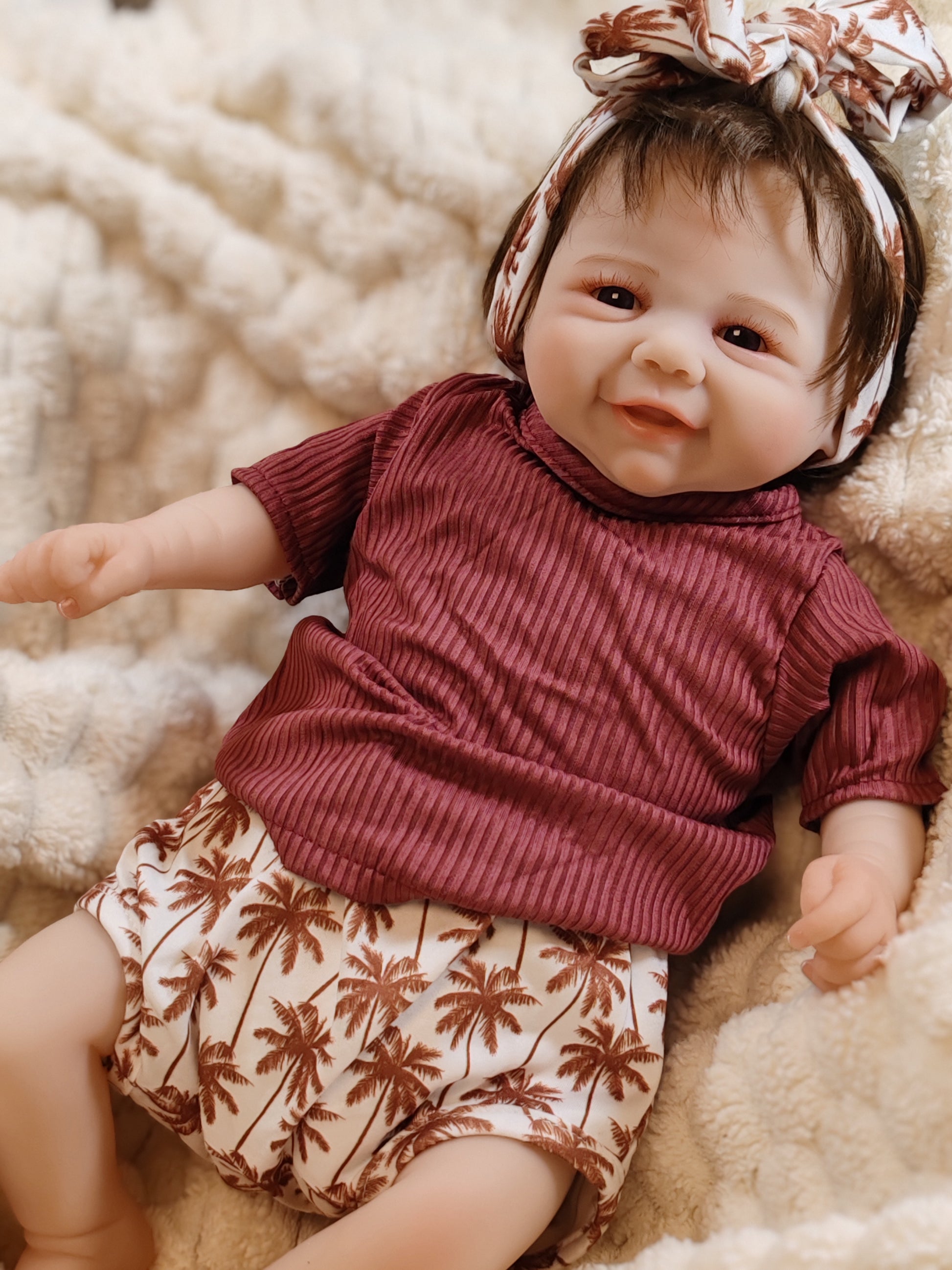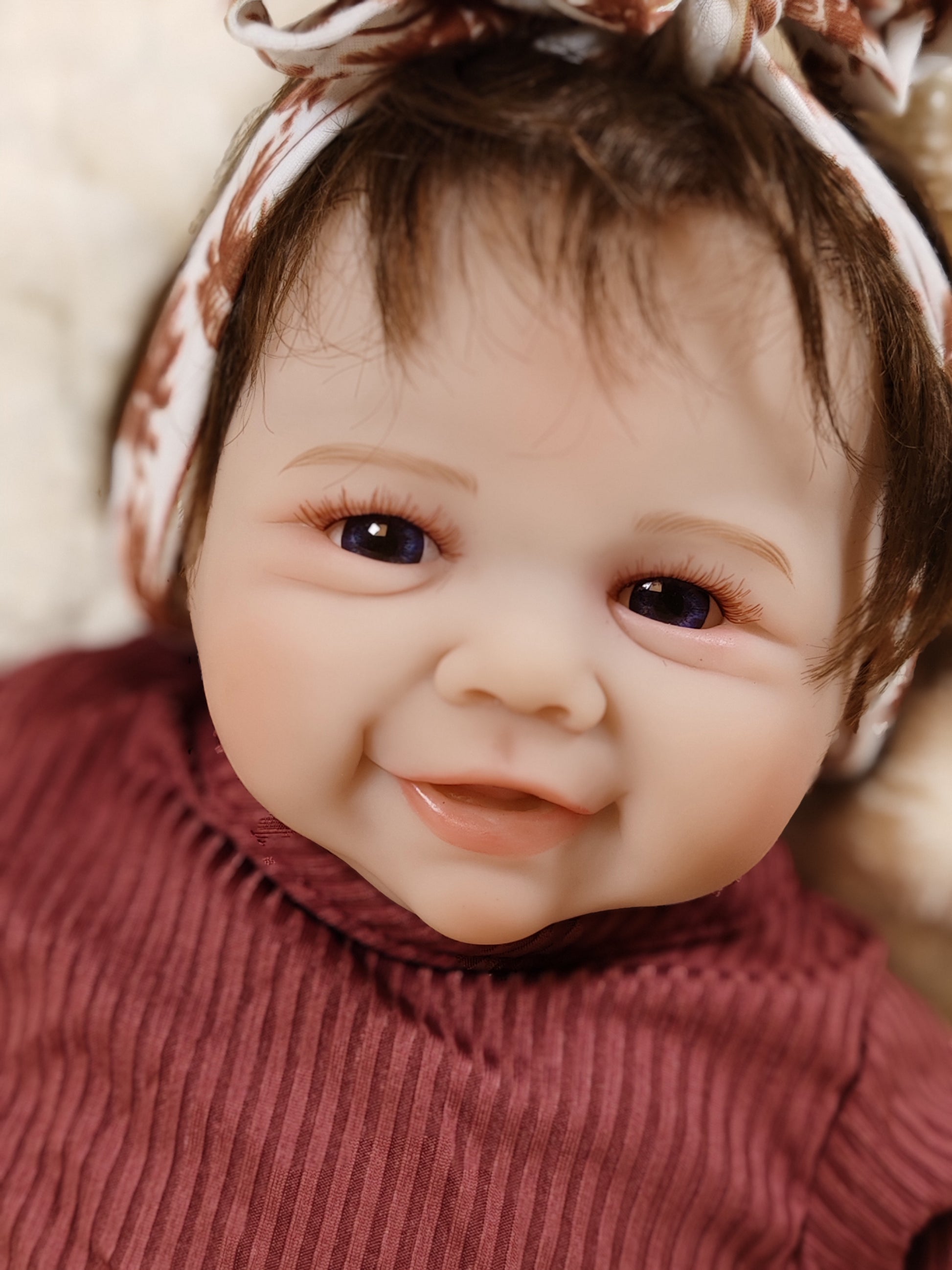 Materiale e struttura: Corpo in tessuto morbido, molto più vivo e morbido, molto coccoloso, proprio come il vero bambino quando lo abbracci ,la bambola è totalmente posizionabile, la testa e gli arti possono essere mossi liberamente